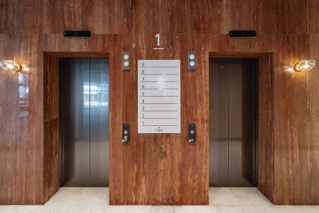 방문객에게 안정감과 신뢰감을 전달하며, 건물 전체의 품격을 균형 있게 잡아준다.